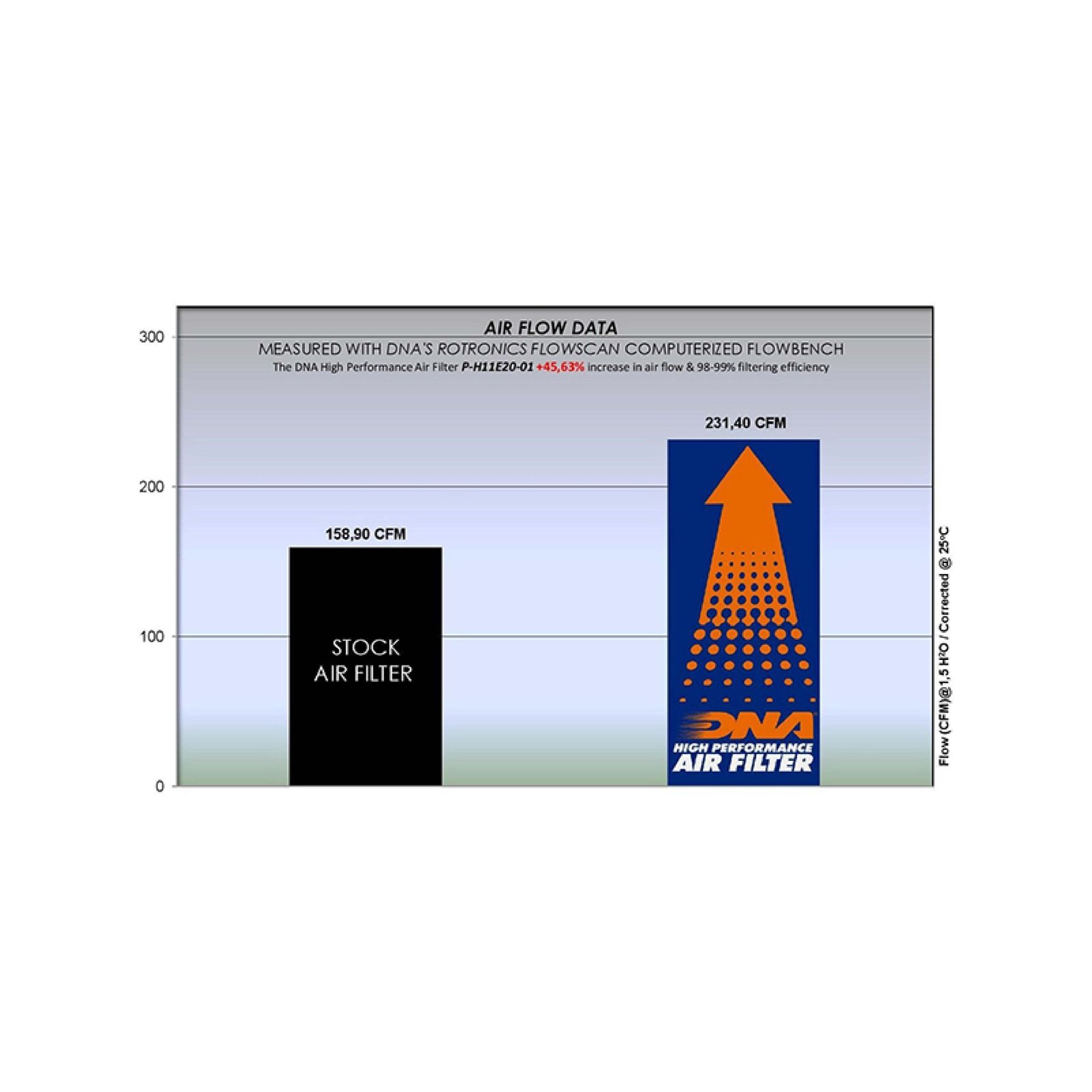 • The flow of this DNA filter is 45.63% more than the stock filter.