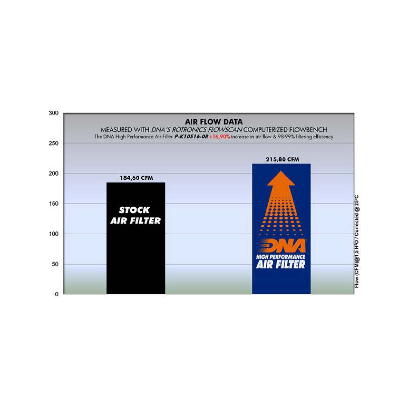 - The flow of this DNA filter is 16.90 % more than the Kawasaki stock paper filter!