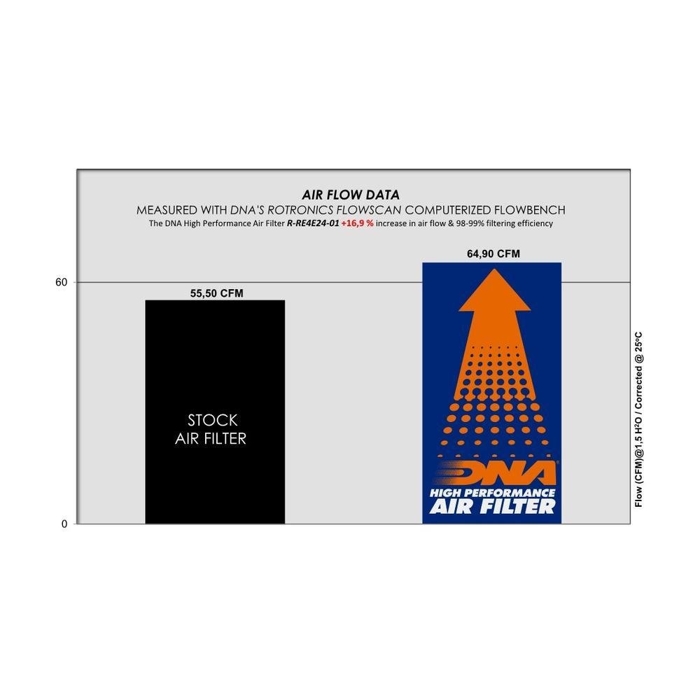 - The flow of this new DNA filter is +16.90% more than the stock filter!