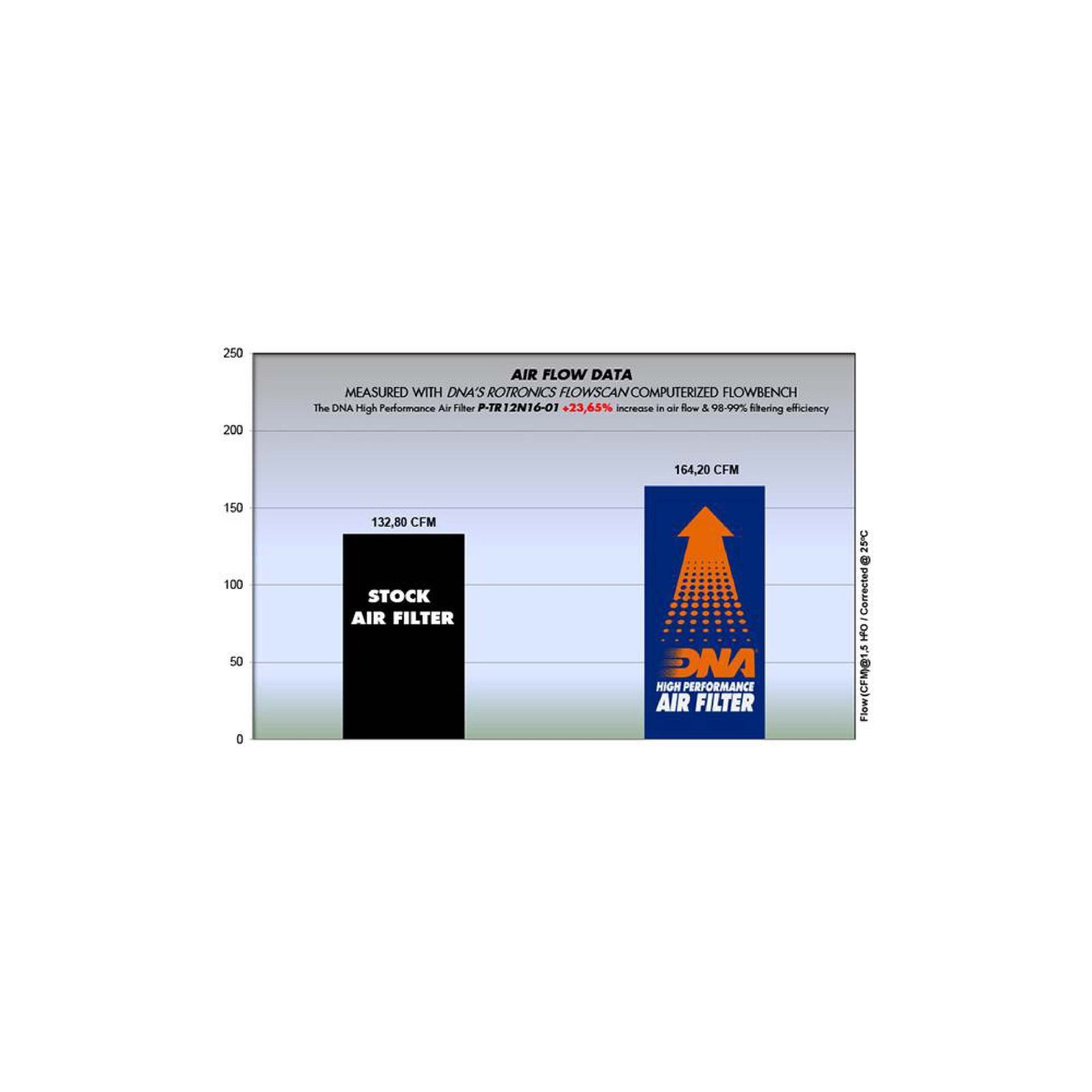- The flow of this DNA filter is 23.65% more than the TRIUMPH stock filter.